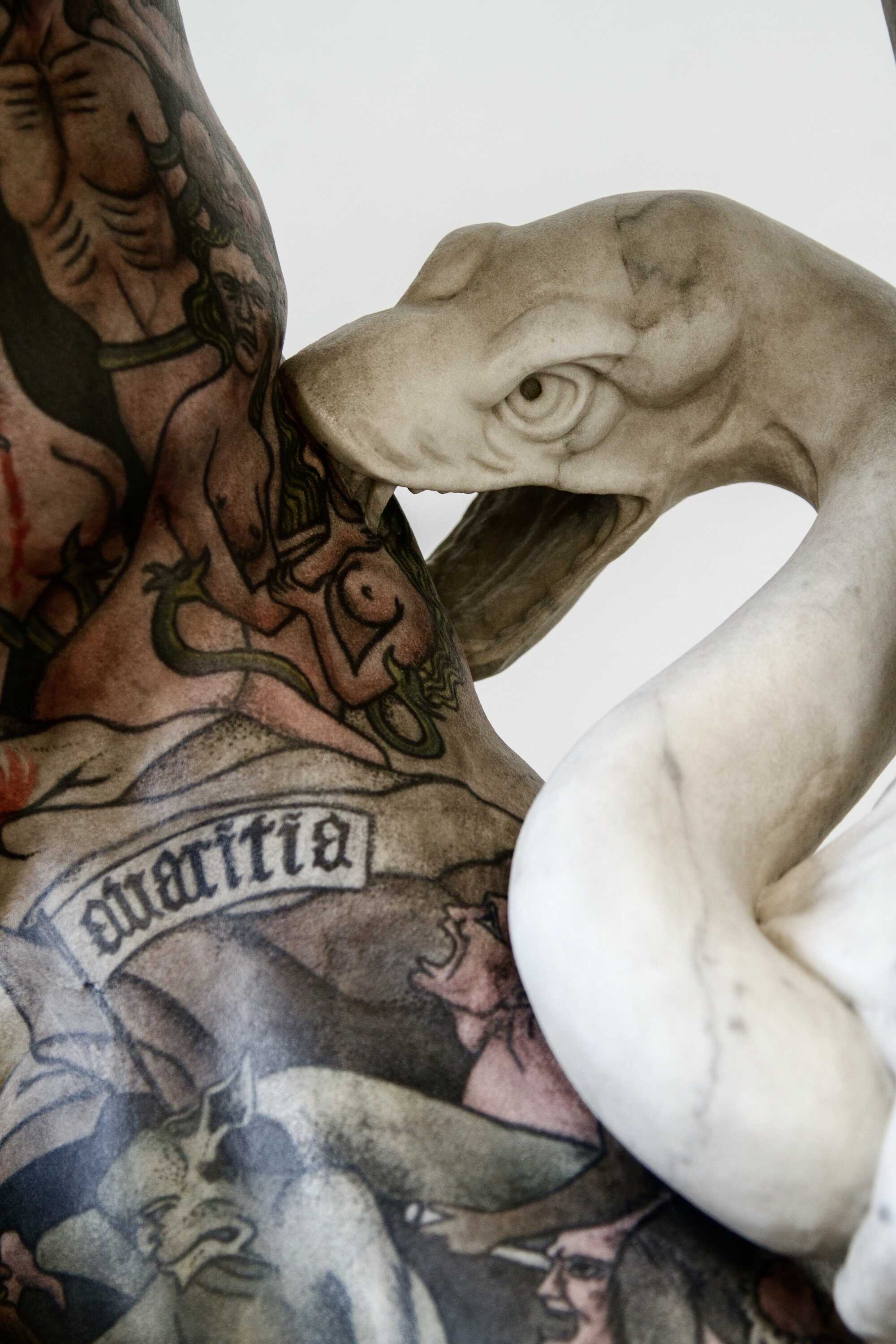 Die Münchner Ausstellung wurde in den Räumen der Glyptothek eingerichtet, wo einige der größten Meisterwerke der klassischen Kunst aufbewahrt werden. Viale kannte den Faun Barberini sehr gut und der Anblick des hellenistischen Meisterwerks aus dem Leben gab ihm Inspiration für ein neues entweihendes Werk. Wir haben während des Interviews darüber gesprochen und einen kleinen Vorgeschmack bekommen, aber aus Gründen der Privatsphäre und Geheimhaltung können wir nicht mehr sagen, bis es offiziell veröffentlicht wird.