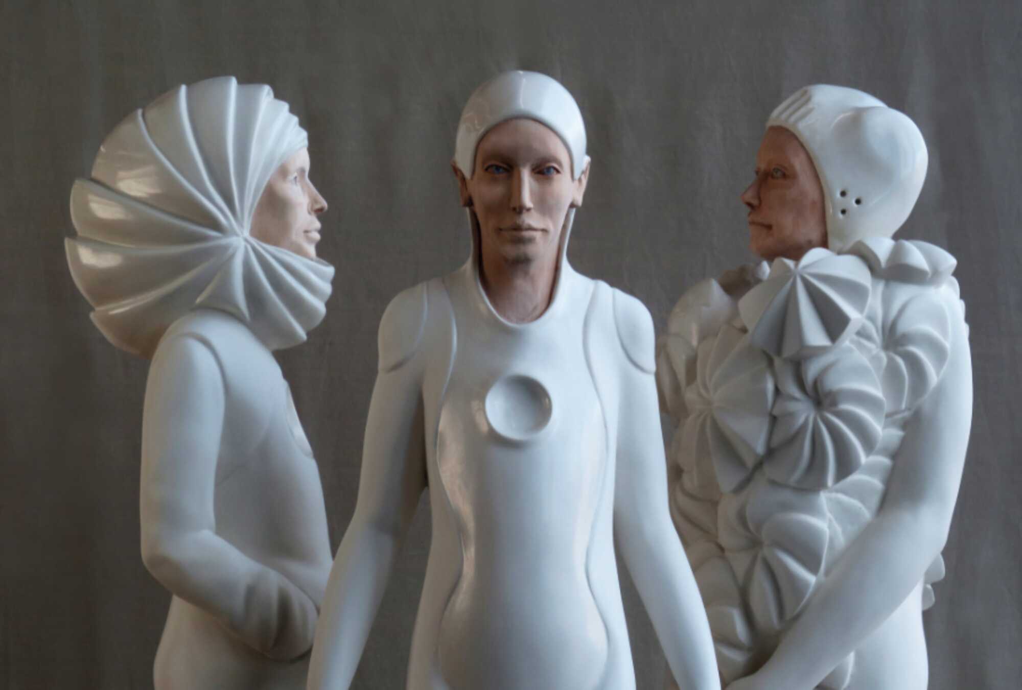 Inhaltlich verhandle ich ein Zukunftsthema. Gleichzeitig bediene ich mich eines sehr traditionellen Herstellungsprozesses. Für mich ist das weniger ein Widerspruch, sondern mehr ein spannungsvoller Kontrast. Natürlich wäre es konsequent zu sagen, man nutzt dann auch ganz innovative neue Techniken zur Herstellung und lässt die Figuren über 3D-Druck herstellen. Aber würde es dann tatsächlich noch diese Spannung haben? Das weiß ich nicht.