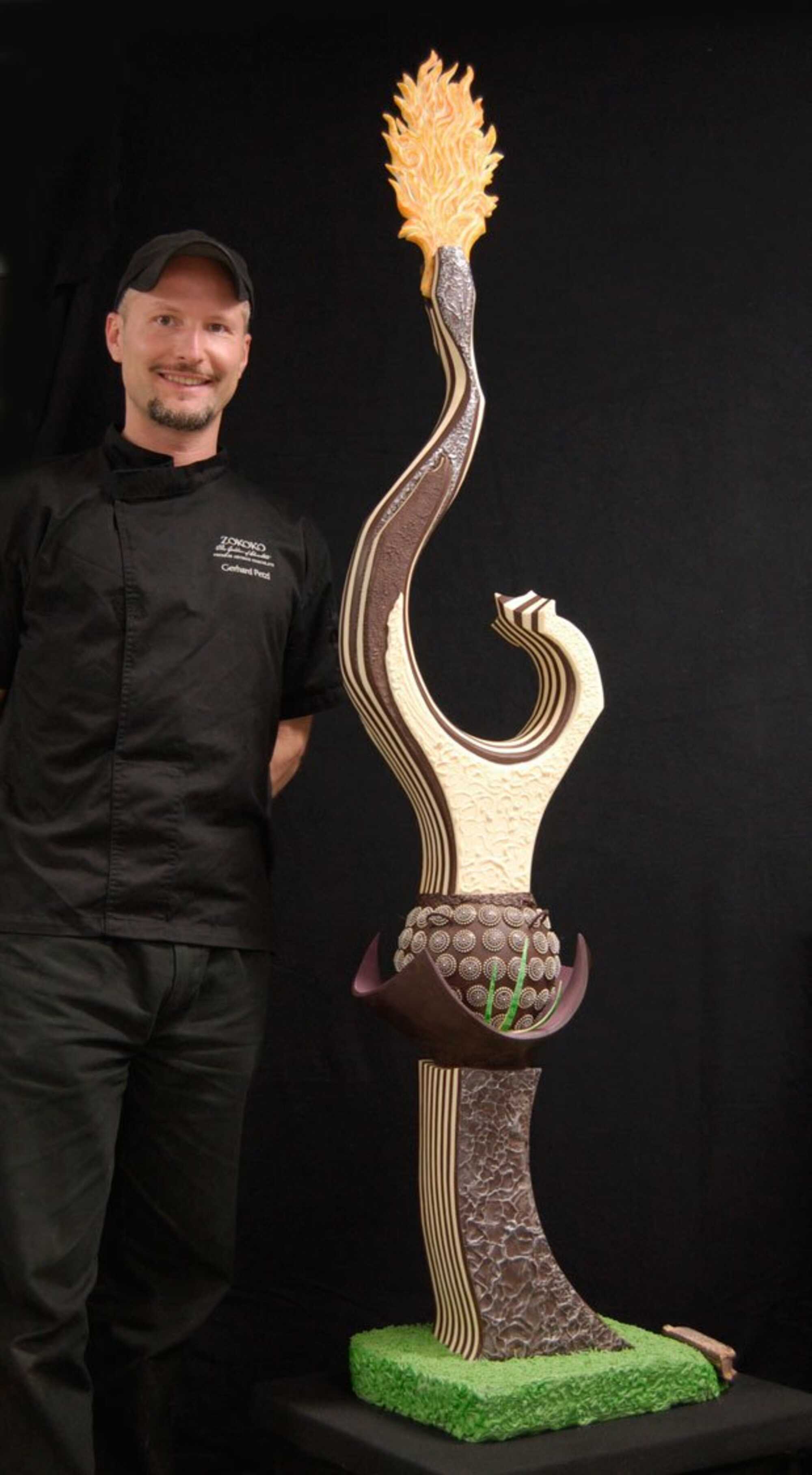 Da ich als Pastry Chef weltweit gearbeitet habe, brauchte ich immer Schaustücke für Buffets und Sonderbestellungen für VIP-Gäste. Nachdemdas Feedback immer außergewöhnlich gut war, entschloss ich mich dann 10 Jahre später, auch noch Kunst & Design (Bildhauerei) zu studieren, um ein besseres Verständnis von Materialkunde, Formenbau und Kunstgeschichte zu bekommen.