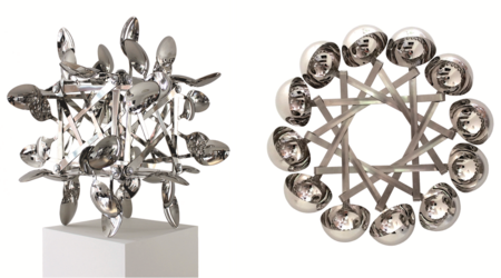 Heinz Bert Dreckmann, links: Gemüselöffel verschraubt, 2015, 54 x 54 x 54 cm;