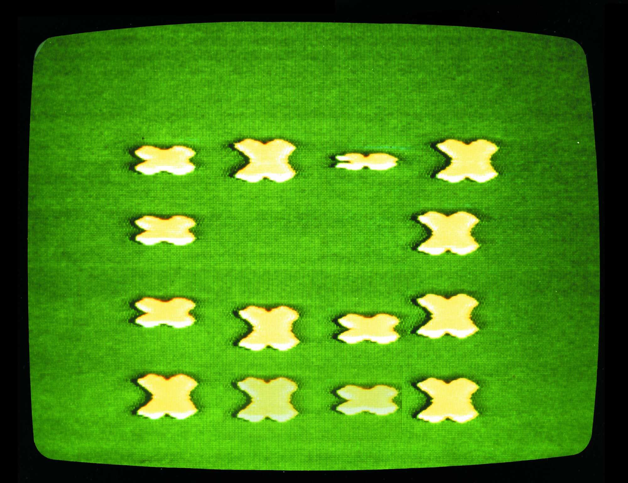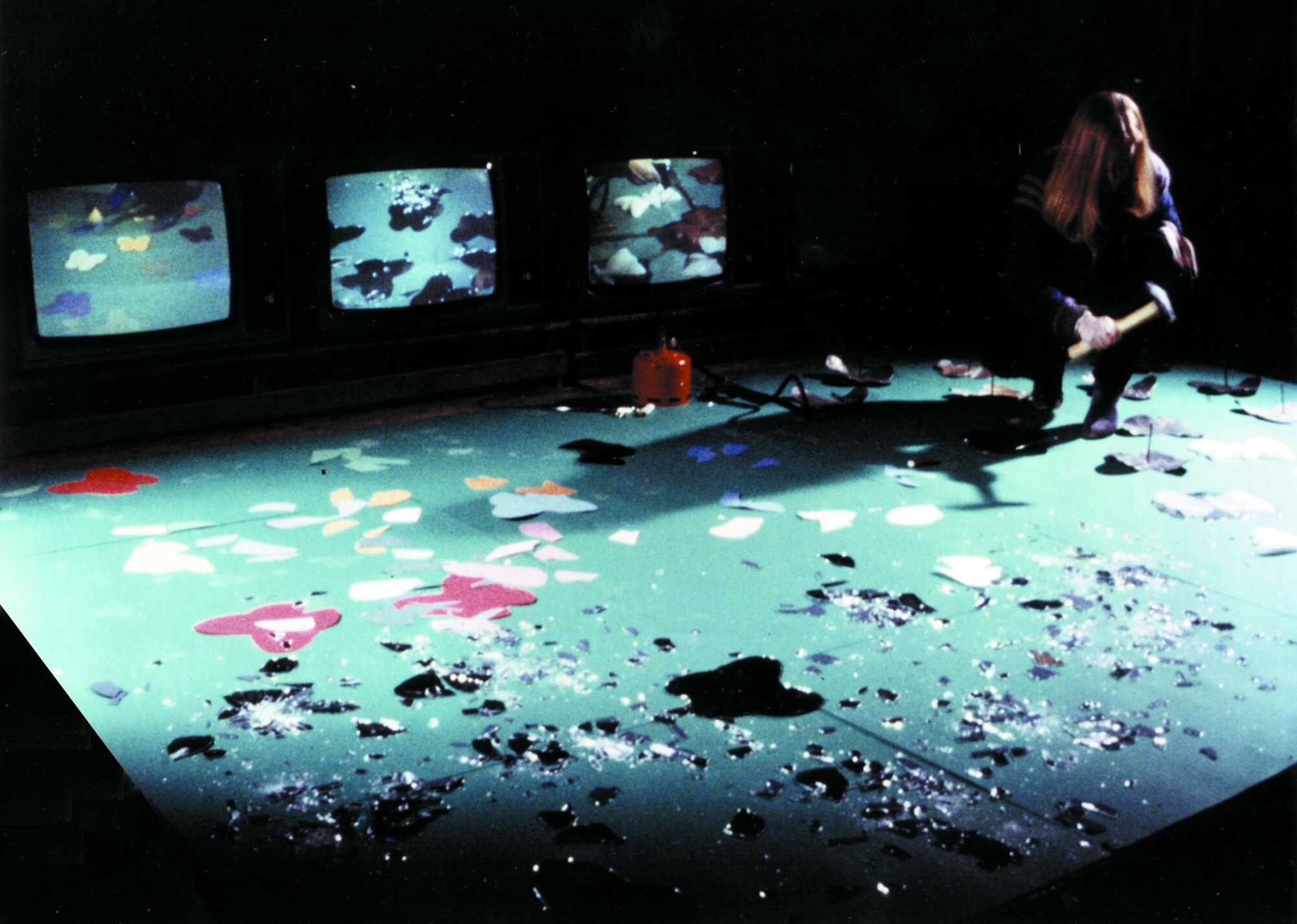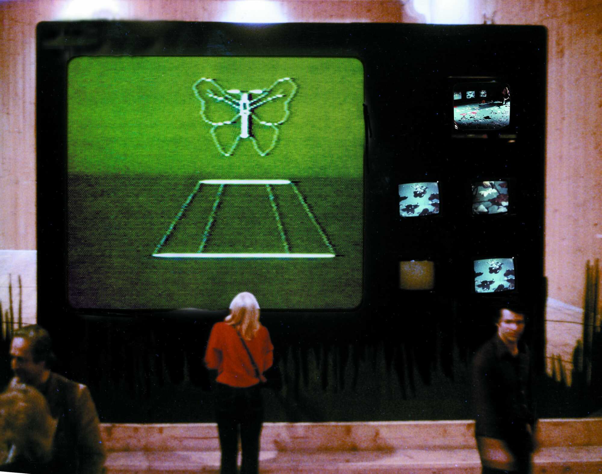 Wir wollen einen genaueren Blick auf einige Beispiele werfen. Die 1984 von der italienischen Künstlerin Federica Marangoni geschaffene Video-Skulptur Maxi TV ist eine Holzstruktur, die einen riesengroßen Fernsehapparat simuliert. Das große Video ist eine Rückprojektion ihres früheren Videos Video Game von 1983, das mit Hilfe von Rechner gestützten Methoden geschaffen wurde, was zu dieser Zeit im Kunstbereich höchst innovativ war. Die „Knöpfe“ abseits des Bildschirms sind fünf tatsächliche Monitore, auf denen ihre Video-Performance Il volo impossibile von 1982 läuft und Video-Elemente, die in der Performance, einer Installation auf mehreren Kanälen, benutzt werden. Was also ist das Originalkunstwerk? Video Game, Il volo impossibile oder die Struktur, die ihr Zusammenspiel ermöglicht? Verändert sich der Wert des Kunstwerks, wenn es unterschiedliche Arten der Konvervierung gibt?