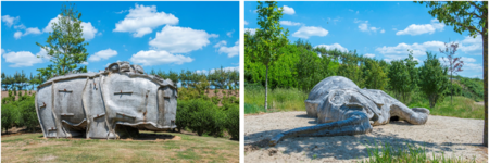 Wie Henk Vischs‘ menschlichen Figuren, spricht auch Die Geburt des Apollo (2019) von Ivan Cremer (1984, NL) den Körper des Betrachters an, allerdings sind seine Figuren eher leichtfüßig. Die Haltung der 9 Musen und des Gottes Apollon basiert auf George Balanchines Ballett Apollon von 1928. In seinem Atelier in Leipzig fühlt sich Cremer seine Figuren ein, um die richtige Emotion zu vermitteln. Anstelle klassischer Materialien wie Bronze Marmor zu verwenden, recycelt der Künstler gefundene Materialien, und gibt ihnen so ein zweites Leben.