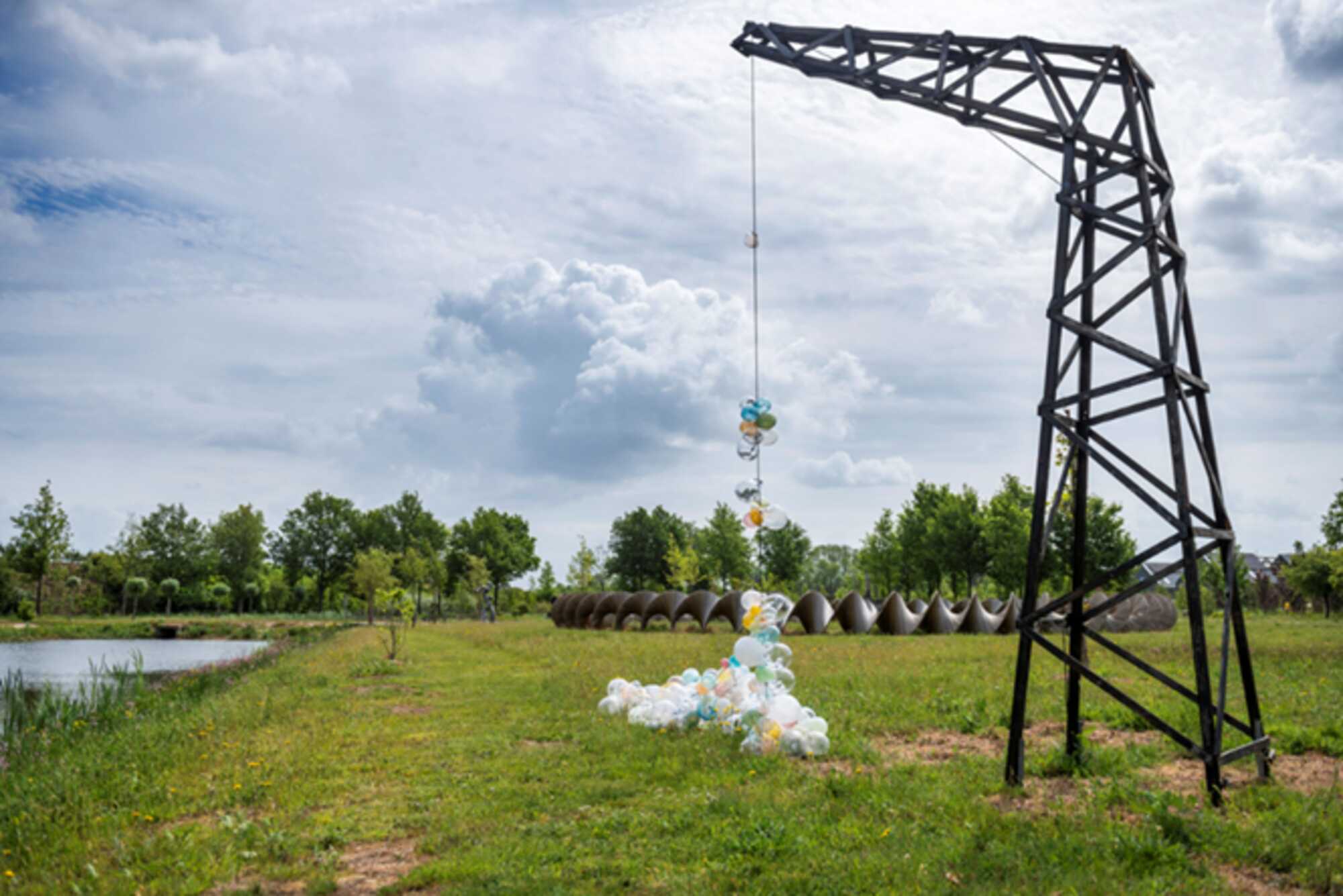 Titelbild: Marinke van Zandwijk, Bellenkraan - Building Paradise 5.0, 2020, Holz, Seil, mundgeblasenes Glas