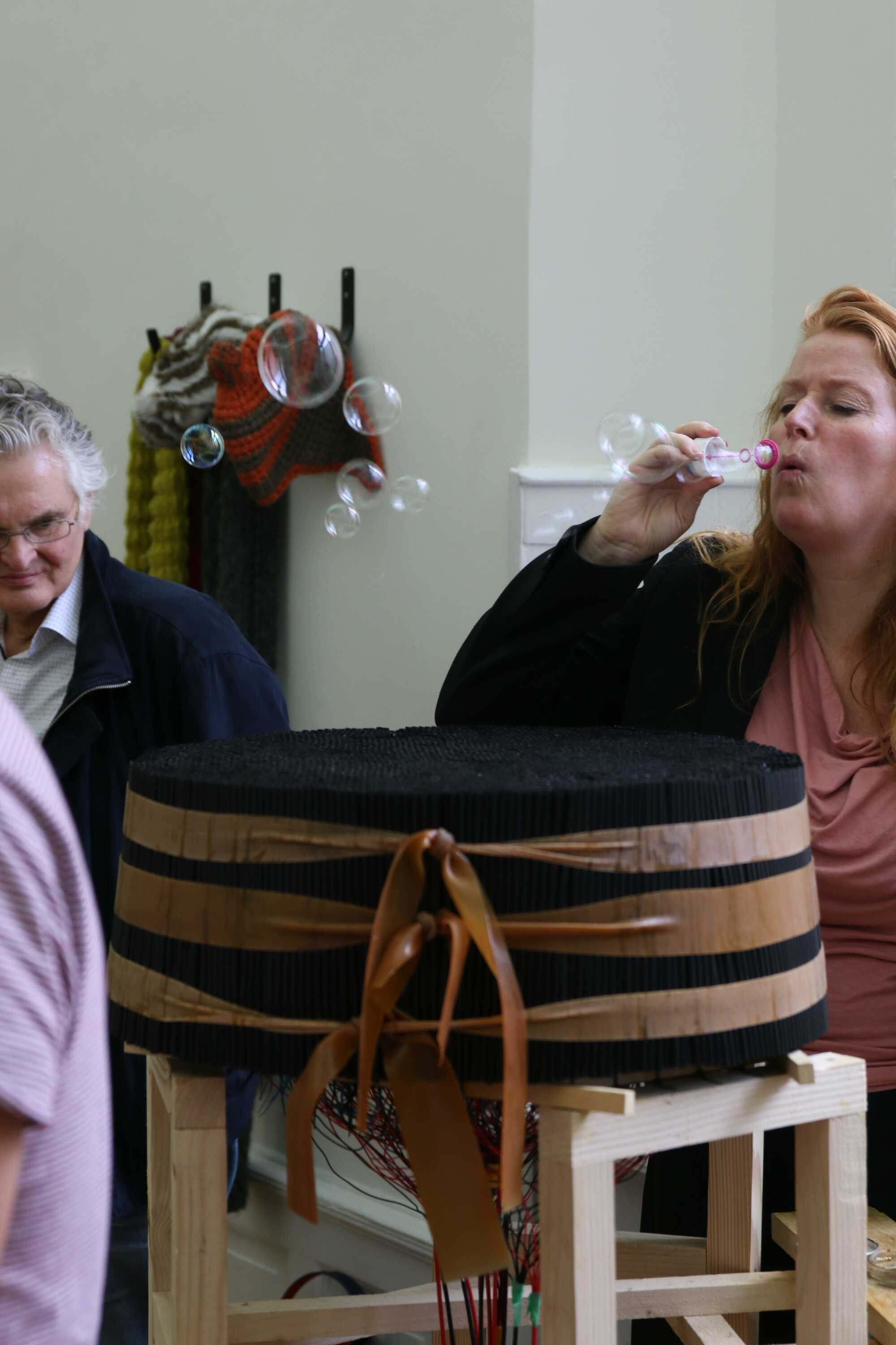 Oft stellt man sich beim erstmaligen betreten einer Ausstellung die Frage „Was erwartet mich hier?“, so auch in den Kunstsaelen, in denen zunächst der Minimalismus und die Konzentration auf das Einfache ins Auge sprangen. Die Kunstsaele sind sicherlich ein Ort für anspruchsvolle Kunstbetrachtende und leben von der Energie und dem Charisma ihrer GründerInnen. Michael Müller, eine faszinierende Persönlichkeit, führte uns mit seinem eloquenten Stil durch die Exponate, die zunächst einfach wirkten, aber durch die Erläuterungen an Kraft und Ausdruck gewannen, wie man es sich kaum vorstellen kann.