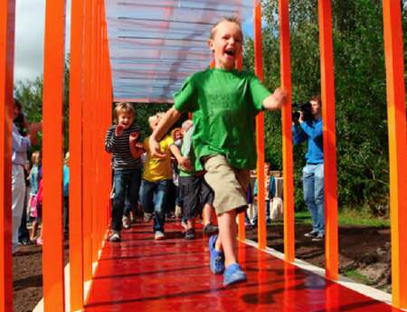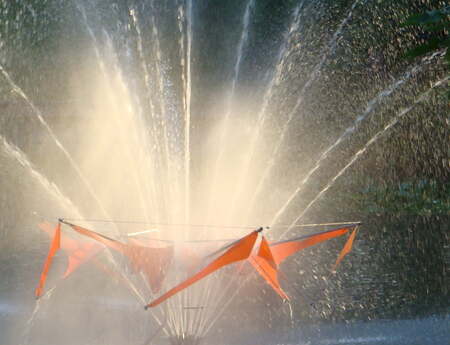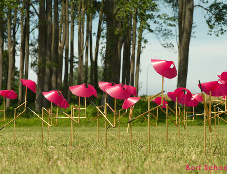 The sculptures become a kind of organism that happily dance when the sun shines. They sleep at night and when the sun comes up they slowly come to life.