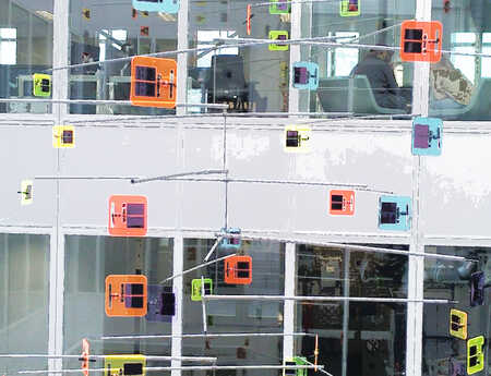 I make Solar Mobiles for these spaces. They create a cheerful, happy and lively atmosphere. You no longer feel so lost in the large space. And if you have to wait, it is very nice to be calm and dream away.