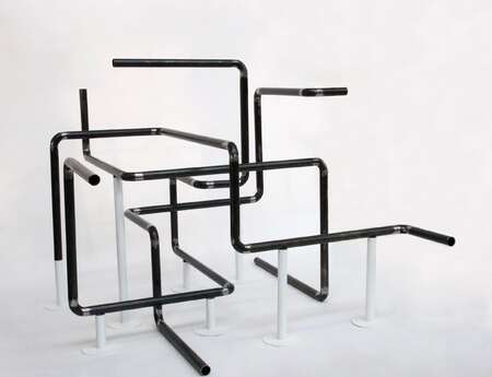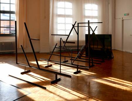I am using usually materials such as metal, concrete, charcoal, and graphite, and relate to their raw qualities and resistance, and work with them with exposed gestures, constructing exposed structures.