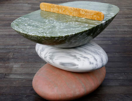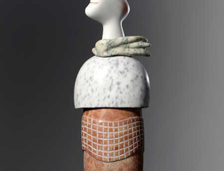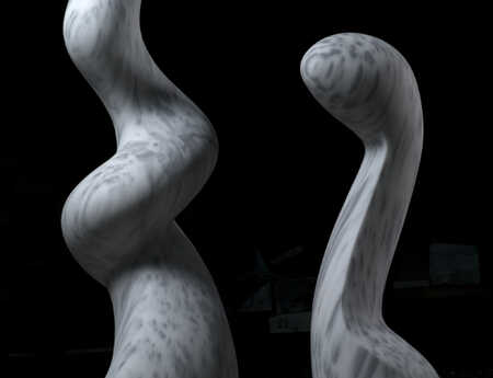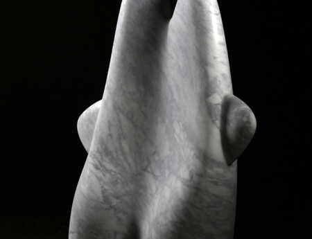 No, not white, I must add color. I paint, blend, scratch, and texture the sculpture until it is completely resolved, not as a marble sculpture, but as a work of art. Additive and reductive, constantly carving, adding stone, cutting, painting, refinement.