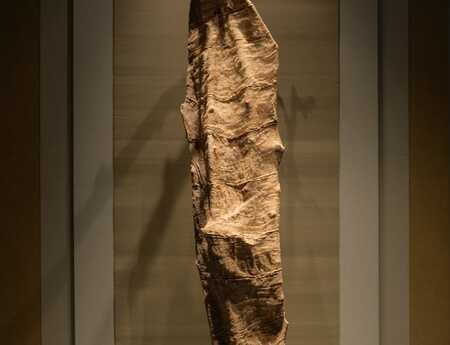 Entre estas piezas es frecuente el gesto del movimiento implÃcito, de las extremidades que las llevan hacia el inicio del movimiento. Son figuras... pero no humanas, no bestias, sino algo otro. Y como cada una de ellas es difÃcil de definir, se convierten en enigmas, huellas de vida corpórea que conservan un recuerdo de donde se vienen.