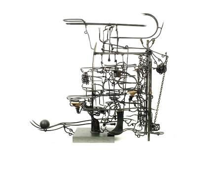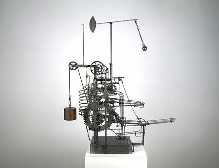Jordi: Sie meinen, ich sei vom Pass her dazu verdammt … ? Natürlicher erinnern etwa der Aufziehmechanismus und das langsame absinkende Gewicht an Uhrwerke. Doch wirklich schweizerisch ist wohl, dass meine Werke das demokratische Miteinander zelebrieren. Fantastisch, wenn es funktioniert, und falls nicht: Niemals aufgeben. Weiter probieren, schweissen und biegen…