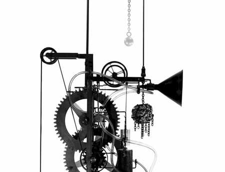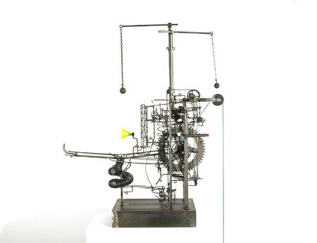 Die Verblüffung, dass und wie es plötzlich weiter geht, ist beabsichtigt, ähnlich wie beim Film von Fischli/Weiss „The Way Things Go“. Allerdings streben sie nach der Perfektion – es muss gelingen! Ich drücke mit meinen undurchschaubaren „Maschinen“ eher aus: Es könnte gelingen.