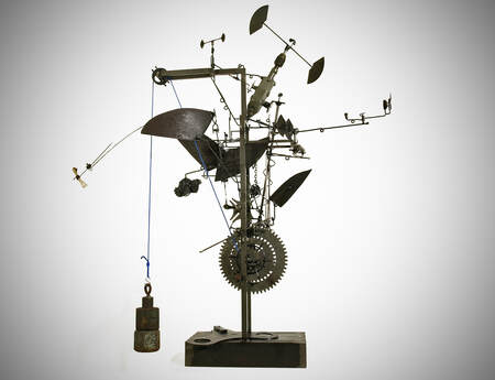 Bei den kinetischen Skulpturen muss der Betrachter erst seine Kraft, mittels einer Kurbel oder Kugel, in den Mechanismus geben. Erst dann, wenn er eingegriffen hat, kann er das Werk als Ganzes begreifen.