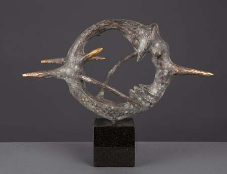 Driven by wonderment and consideration there are 2 important themes. At first the Cycle of Life in which i often use the bird as a metaphor. Birth , growing up , happiness , hurt and pain and all emotions we experience as human beings are imagined and poured into form , a sculpture.The next theme are the experiences in nature . As well the theme Current, imagined in space and movement, build by the 4 Elements: Fire ( Light ) ,Water and Earth ( modelled in bronze and stone). My work is not only about the recognizable but about the spirit settling down in matter. Such as it shows a unique vision on the world and people.