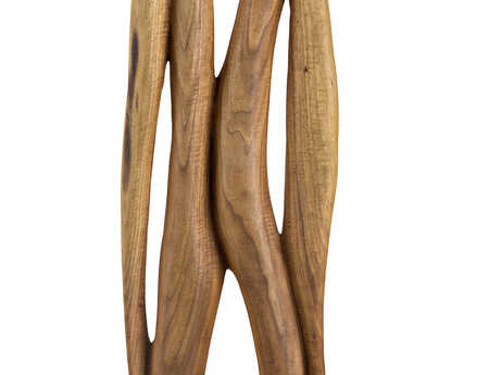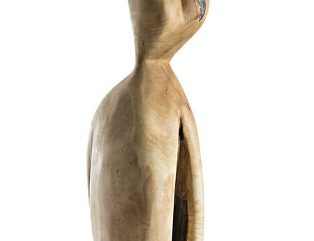 For Waltraud Schroll domestic wood constitutes the raw material of her sculptural art. The materials handled encompasses mainly oak, walnut and fruitwood. What at the beginning gets tamed by the force of the chain saw, changes during the work process into a natural-aesthetic art work. The precise polish is done by precision grinding machines and manual rasps. It is only then that a log or a root reveals its inner core, which always comes as a surprise. As if nature by itself provides for the creatively altered form, lines and contures of the sculpture into a new yet familiar seeming object. The results vary broadly from tall slender figures to huddled female bodies. In Waltraud Schroll's work nature and art are always engaged in a immediate and harmonious dialogue. The themes reflect the notion of creation in a downright fundamental way and deepen the impression of a substantial as well as reverential art.