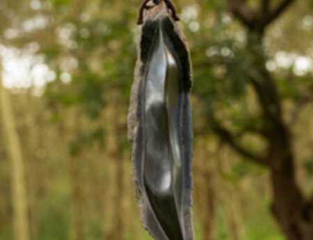 The installation 'Tears from the Sky' (a combination of Serpentine stone and leather) she made in 2019, an unexpected foresight to the Pandemy. The tears of Stone are cried for the destruction of the Earth by Humanity. The net points at the power of our creativity to make the right change.