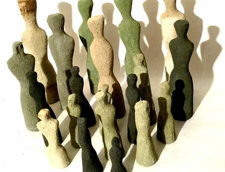 For the last 15 years my work as visual artist has involved research on ancient civilizations, which I then recreate in the form of sculptures, paintings and installations. My purpose is to recover a cultural heritage from all 5 continents which I believe encapsulates transcendental, if cryptic messages for the 21st century. I have focused on abstract designs, specially age-old labyrinths which served as astronomical calendars, maps to the Afterlife, metaphors for the different stages of the human voyage or magical objects to attract fertility and auspiciousness. I also use ancient ritually naked figurines from different corners of the planet as a source of inspiration, recreating them in different media for my artistic installations.