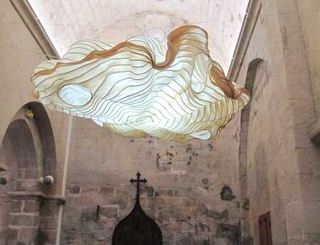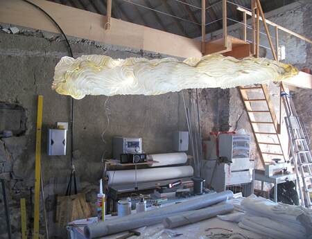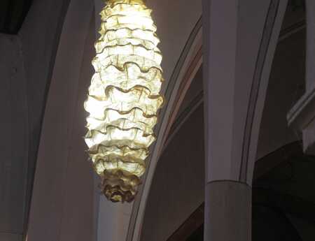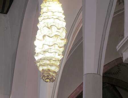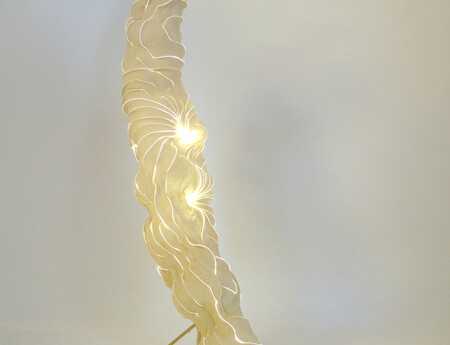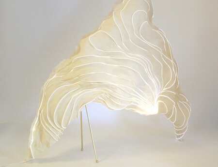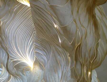Komplexe organisch-skulpturale Formen aus durchscheinenden Pflanzenpapieren, eine Welt wie aus Wolken, Weichtieren und Schimären. Spuren einer Geschichte durch ein Flechtwerk natürlicher Fasern. Geheimnisvolle Lichtgraphiken durchstreifen das ungewöhnliche Material.
