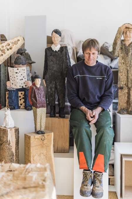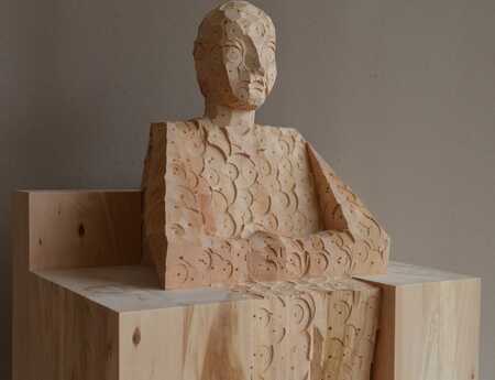 My Sculptures are everyday stories which I form into wood. They provide evidence of my critical observation of the here and now. Minimized in form and structure, they seem static. They have no gestures, captured in the moment, they convey a feeling of power and dynamics for the future. The working of the wood is intriguing . Rugged, pitted and fibrous. I create my sculptures only with chainsaw and drill. My creative idea, the characteristics of the wood and the technical restrictions of drill and chainsaw combine in a unique work symbiosis. I interpret these design elements as facets of the spirit of the times. The observer has, nevertheless, sufficient space left for their own interpretation. It is my philosophy to work exactly on the edge between representational and abstract design, while keeping both areas balanced.