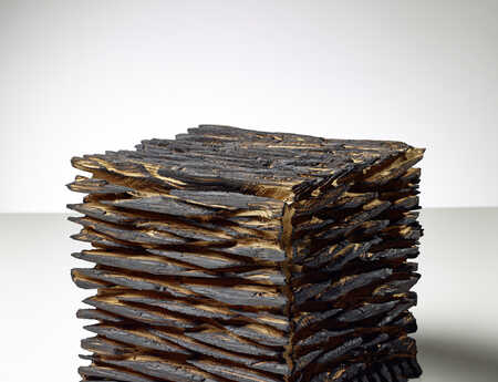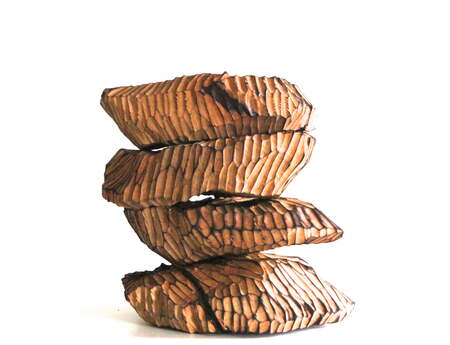 The material I mainly work with is wood. Wood invites me on an endless journey of discovery – each log becomes an experiment. The color, texture and smell of the wood defines the relationship that I build with the evolving sculpture. The exploration of the material's properties, but also the tension between chaos and order, between volumes and surfaces form the centerpiece of the creative process.