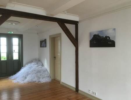 The Barren wasteland series. It was in the summer of 2019 that I traced my father’s footsteps to the old trails of the barren wasteland west of Vatnajökull glacier in Iceland. We drove up to the Jökulheima cabin buildt 1955 at the foot of the glacier. It shocked me to find out that the glacier had retracted about 10 km and we could just get a glimpse of it in the distance from the cabin. In this area of barren wasteland, I took photographs without realising at the time what I would use them for. Soon after the trip I started to work on my photos and merged them with my dad’s old images taken up to 70 years apart in the area and on the glacier. I wanted to express with collage the known facts, that forces of nature are unpredictable and nowhere are the opposites as great as in this barren wasteland. Where the white glacier's edge has retreated and wide areas of black sand and wasteland appear. The Mountain Series 2014 – 2018 of recycled materials influenced Gudrun by working in her Reykjavík studio on the site of one of Iceland’s leading providers of environmental management services and clean energy. “Slow but constant changes in the immediate surroundings made the work happen naturally”, Gudrun stated.
