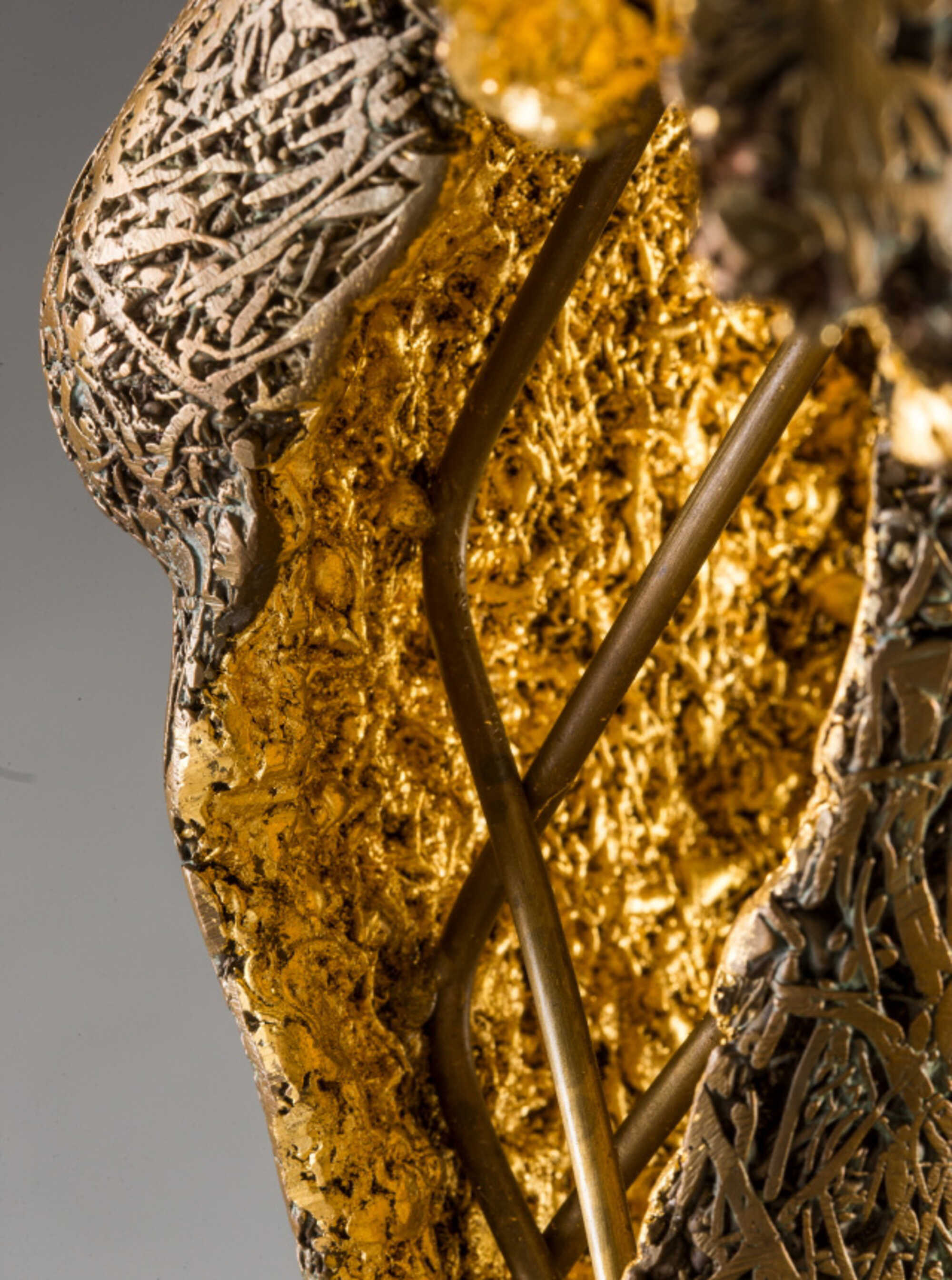 Cast at Venturi Atre Bologna the 24k gold gilding was added in Sept 2017 by Boky Hackel.