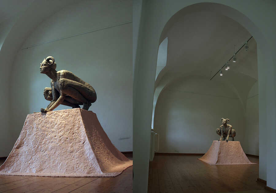 KRIEG UNTER DER HAUT (HÖRNERFRAU), 2009, Einzelausstellung im Kunstverein Bobingen