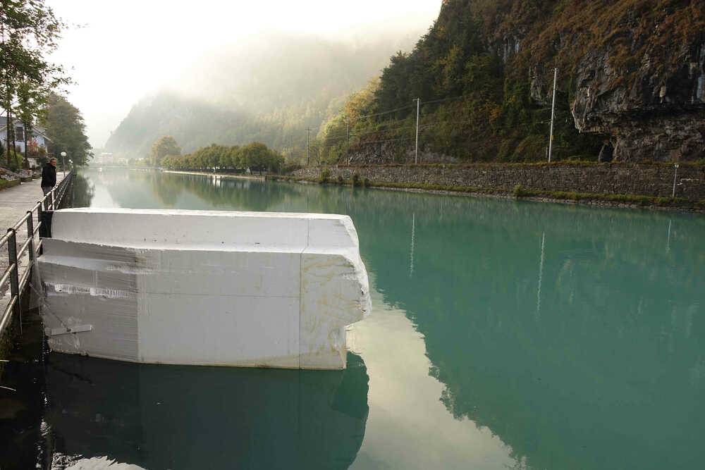 Temporary installation on the river Aare at Interlaken (kunstimfluss.ch)