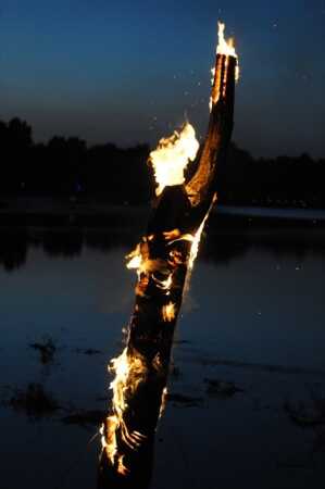 ConnectGlow. Installation, brennende Skulptur auf Lake Nevin, Bernheim Arboretum.