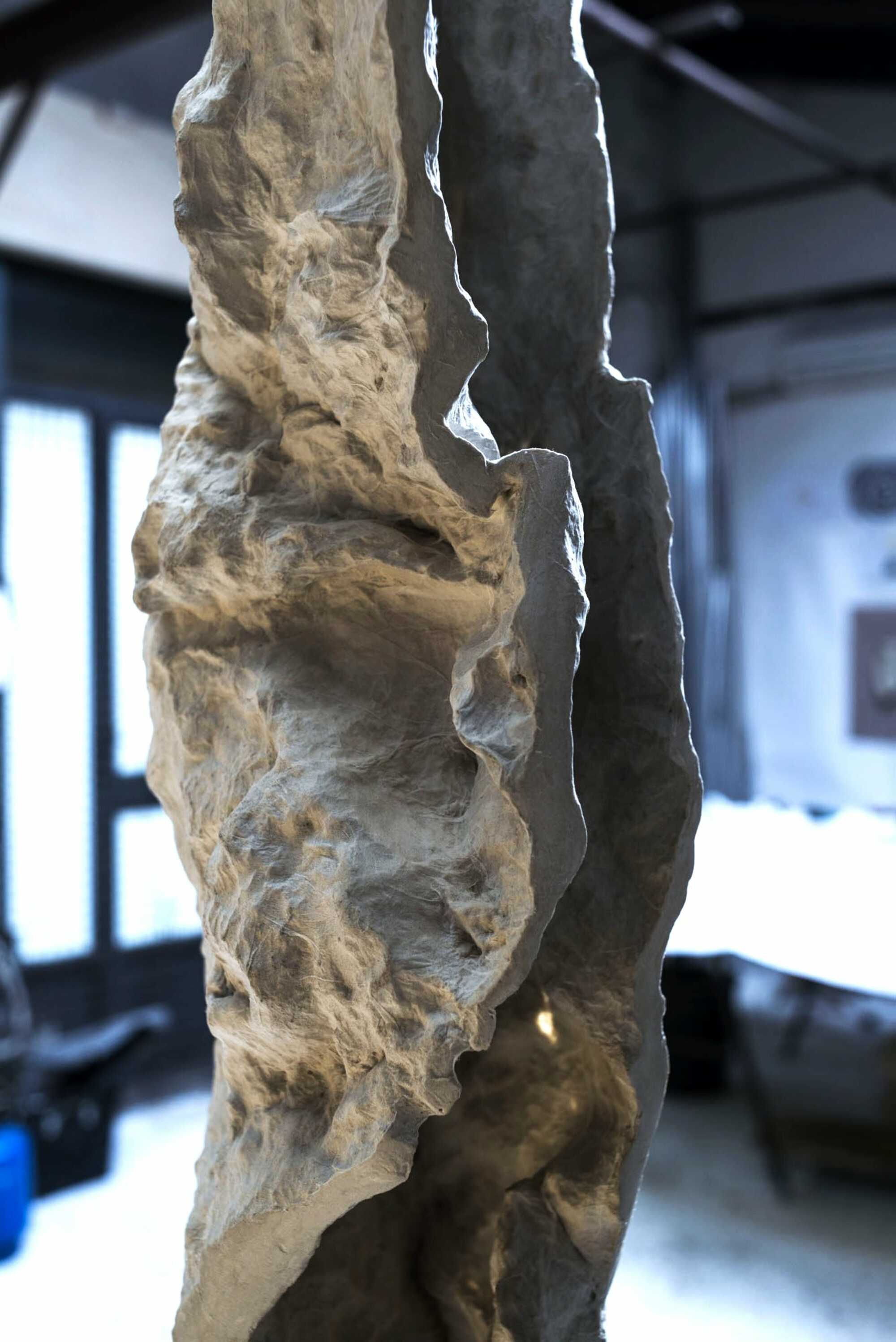and then contorted. Once dry, the sculptures are carefully covered by several hundred layers of “Washi”