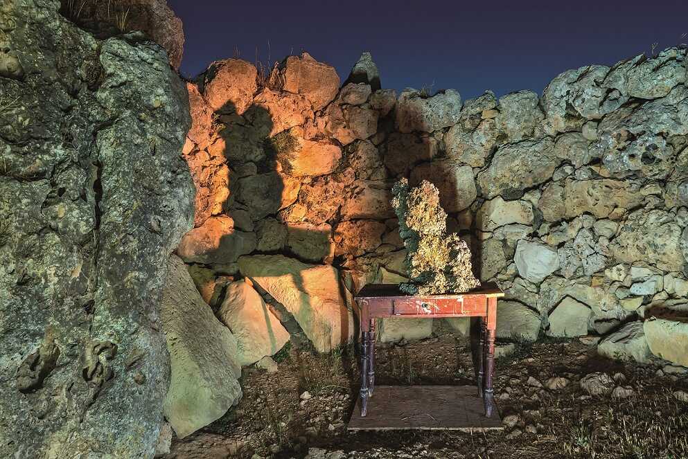 MUTTER, unfired clay and found table. Part of 'Ggantija 2013 Project exhibited during a performance at the UNESCO site Ä gantija Temples in Gozo Malta. Photo by Daniel Cilia.