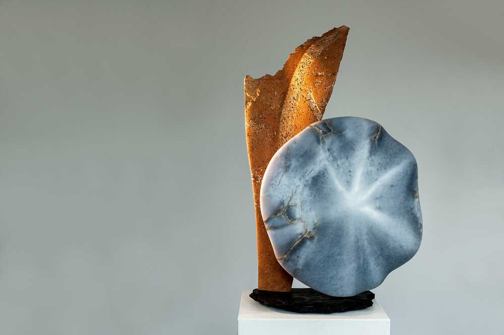 Blauer Alabaster und persischer Travertin ergänzen sich und bilden in ihrer Gegensätzlichkeit eine Symbiose