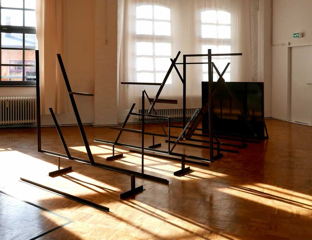 The work is an installation which ranges between resemblance to the actual object - a fence spread in the space on several layers, and an abstract drawing in space.