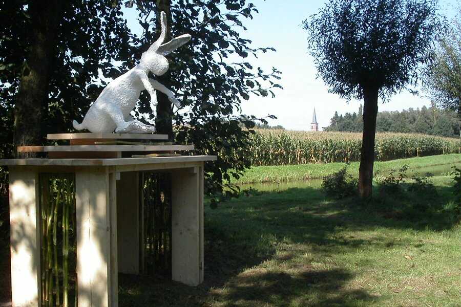 An altar for an ordinary animal manages to establish a connection between the church village of Diessen and the area where Landart Diessen takes place. In addition, visual artist Aurelia van der Burght brings an ode to the hare with this sculpture. This creature is equipped with special qualities. Fast, smart, alert, funny, symbolizes fertility, cyclic rebirth and magical power.