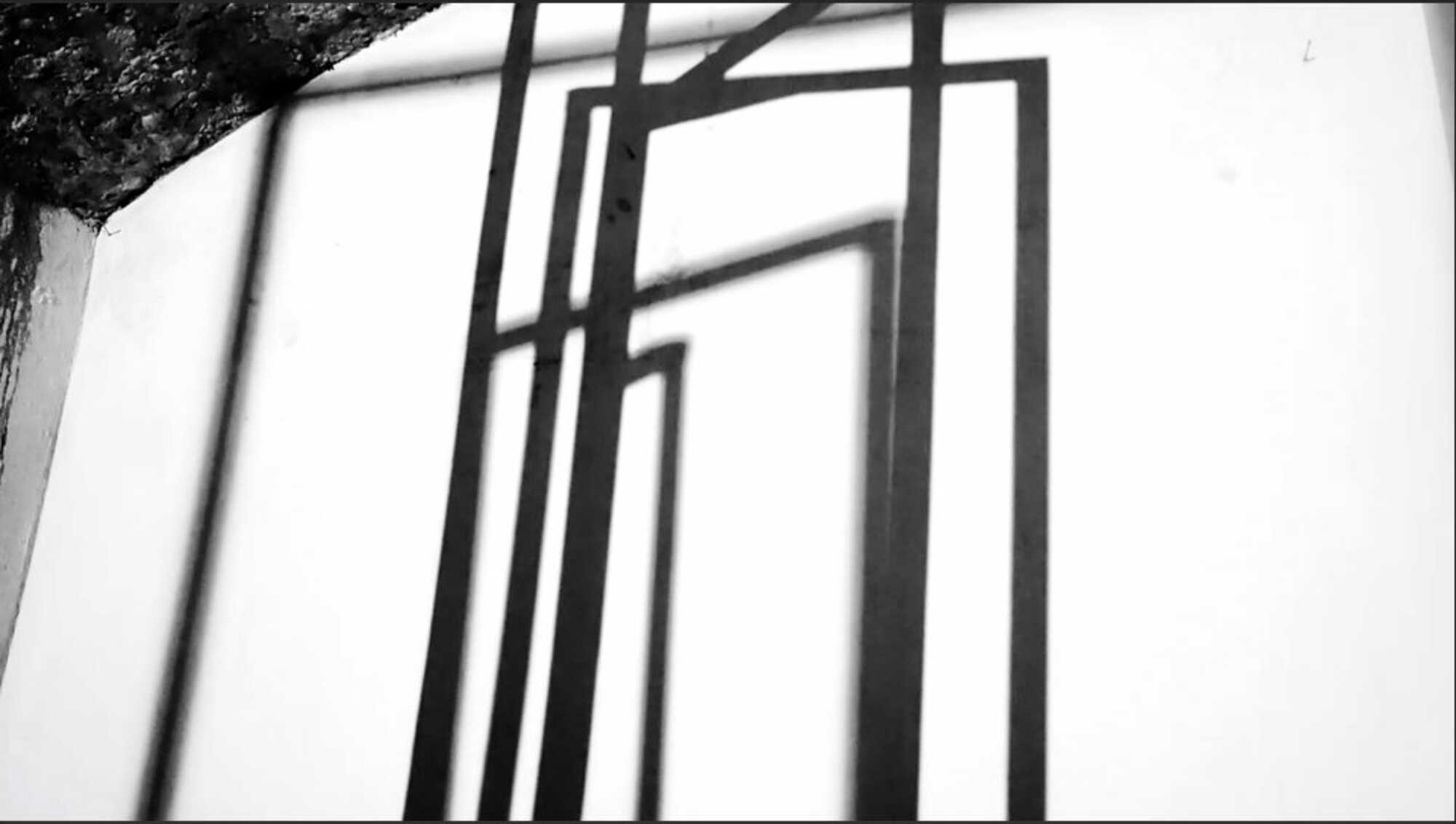 Underground kinetic light installation, moving shadows creating rhythmic optical illusions.