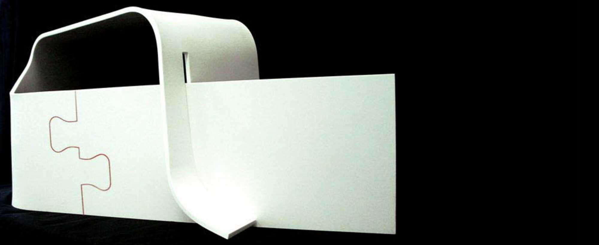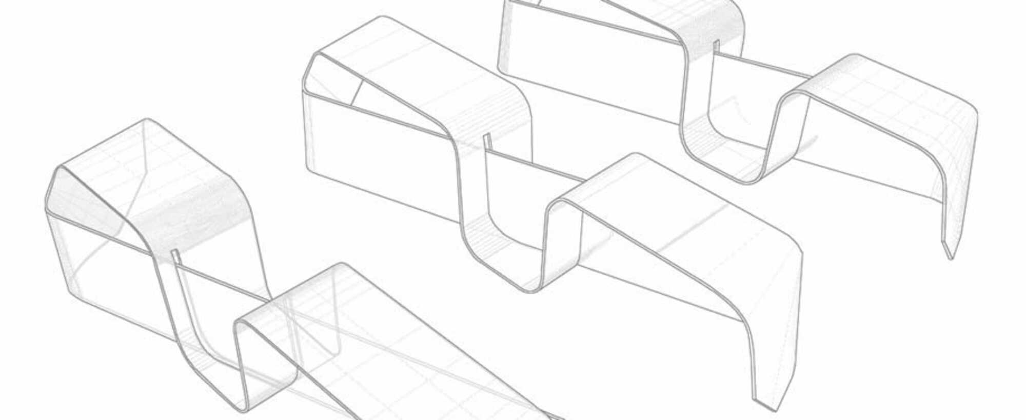 die Programmierte Strucktur entspricht einem Möbiusband, welches dann zweigeteilt und als Sitzmöbel für eine Badelandschaft in weissem Corian gefügt mit rotem Corian ausgeführt wurde.