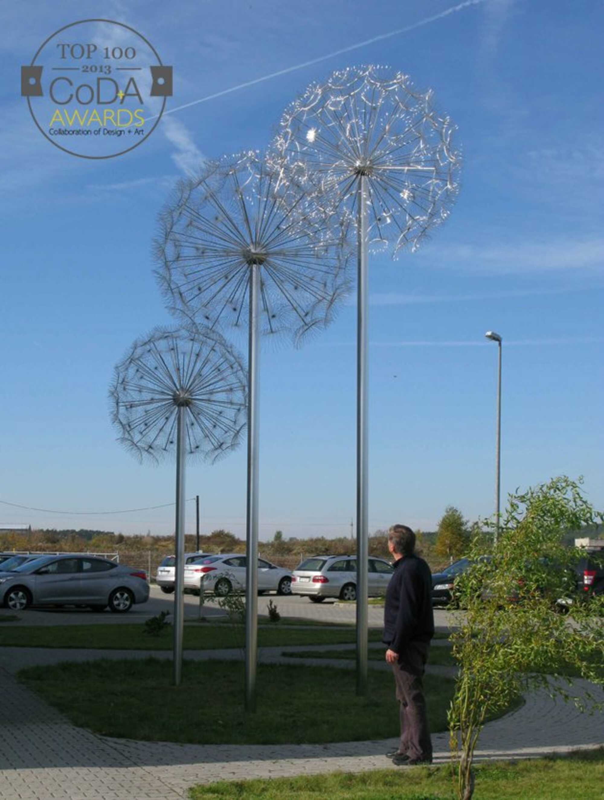 Motive of the project were dandelions which are present in the nature but are made of acid resistant stainless steel electropolished. They are transferred from micro to macro scale, by modern form but also related to nature.