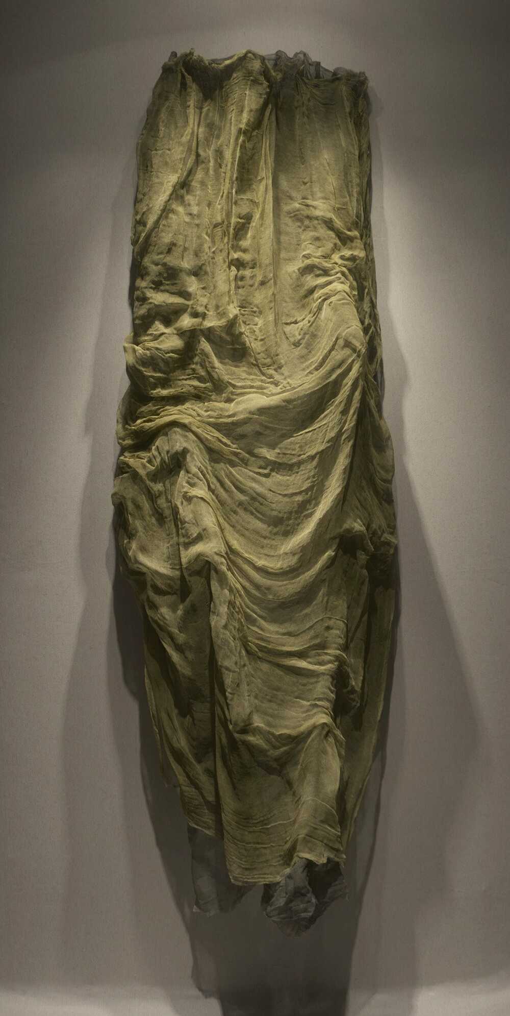 Wall-hung work made from tarlatan gauze, light internal structure, color