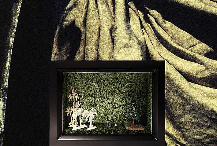 Auf einem Foto sitzt ein Objektrahmen mit einer Installation, die eine Geschichte erzählt. (Ausschnitt)