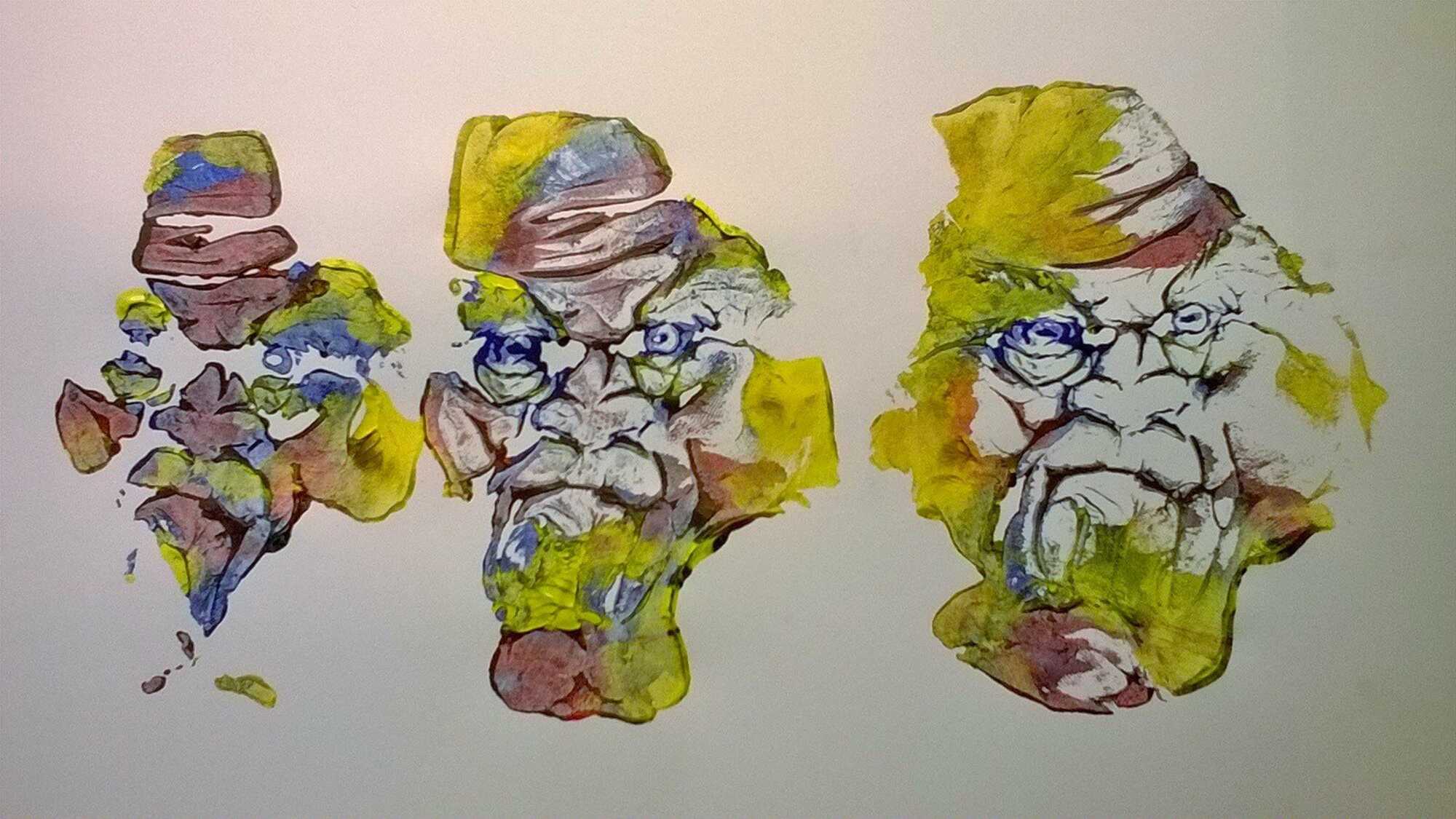 Mit meinen Schöpferischen Zerstörungsarbeiten schaffe ich bevor eine neue Idee die alte zerstört ein Gedächtnis. So sind die Abdrücke Erinnerungen an eine Skulptur welche die Zerstörung hinterliess oder erhalten hat. Man erkennt Fingerabdrücke, Modellierspuren, Farbe die zerfliesst. Ein toller Mix zwischen Hoch- und Tiefdruck mit der verlorenen Form.