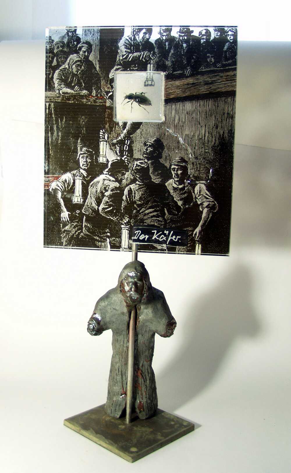 Keramikfigur mit Metallständer und bemalter Acrylplatte mit Einbettung.Höhe58 cm