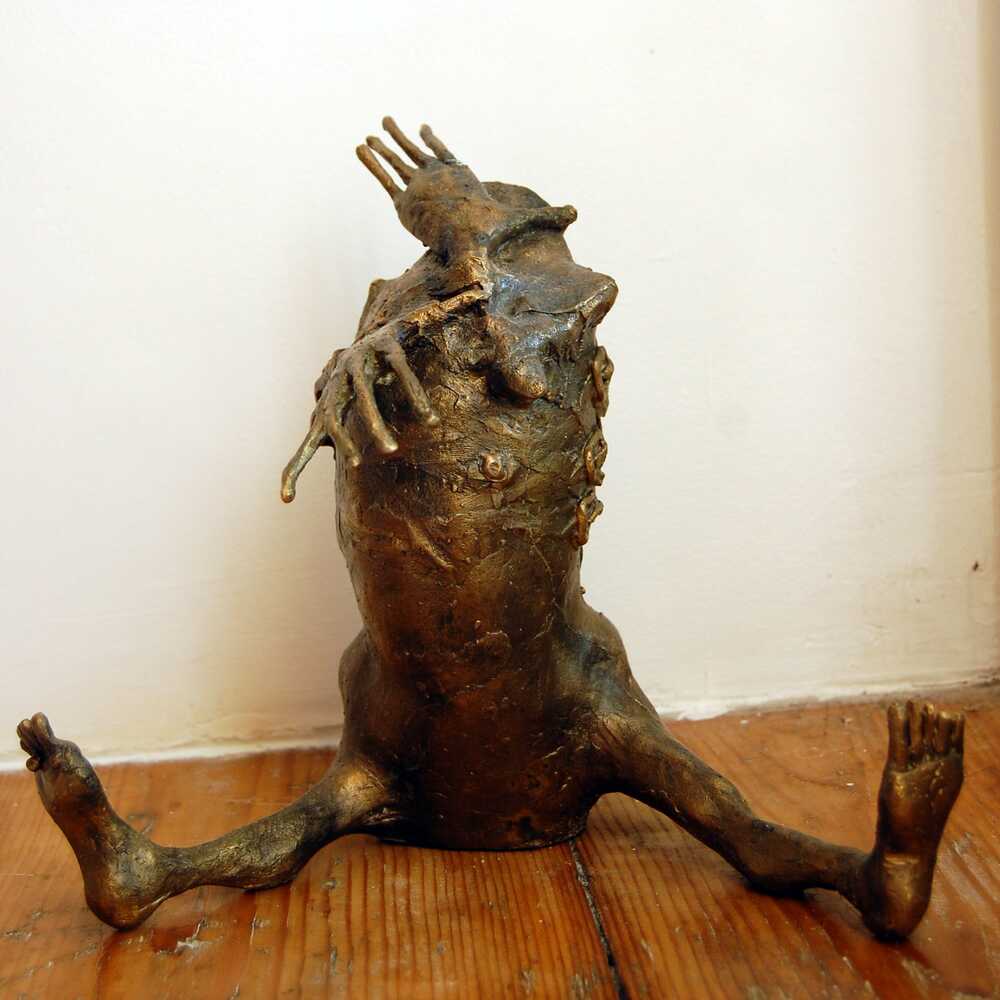 Starting from the human dimension, each character – which may become an exemplary model to be meditated upon – makes reference to fundamental life experiences in a place (universe) dominated by the everlasting omnipresence of frustration, whose existence in time is intended to be anticipated. Therefore, these works are materialized in the visual plan of the imbalance between inner- and outer-self.