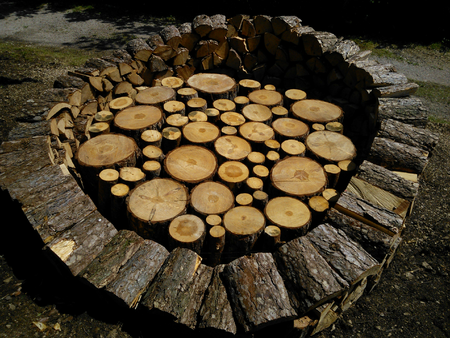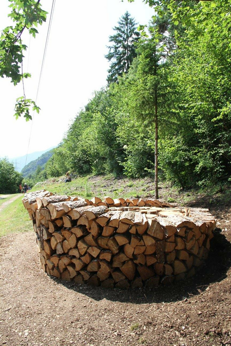 An installation for "BAS - BOSCO ARTE STENICO", a land art international annual festival in Italy. Reflection concerns water as a vital element. Growth rings of a tree represent a lifetime and before their growth has been cut off it has been influenced by the amount of rain fallen in the woods. They tell, in some ways, rain stories (rain poetry in the woods) and they themselves refer to concentric waves on the water's hair. We have to consider the vital importance of trees in the life cycle of the element necessary to life. The WATER well is also an ancient and emblematic element of survival, in this case with a decontextualized reference: instead of being the essence of an inhabited center is placed in the middle of a forest, realizing a double referring to a fairy tale: the forest and the well are both united by mystery and desire, attraction and repulsion. http://www.boscoartestenico.eu