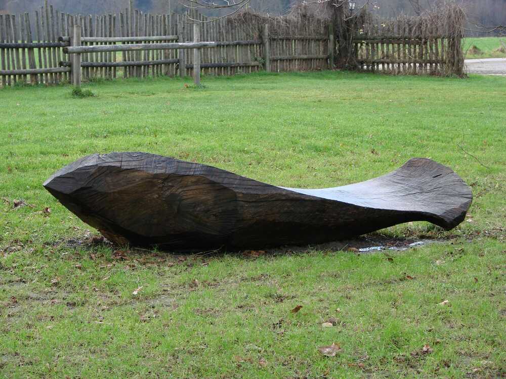 Fisch ist aus einer vom Sturm umgestürzten alten Eiche gesägt.