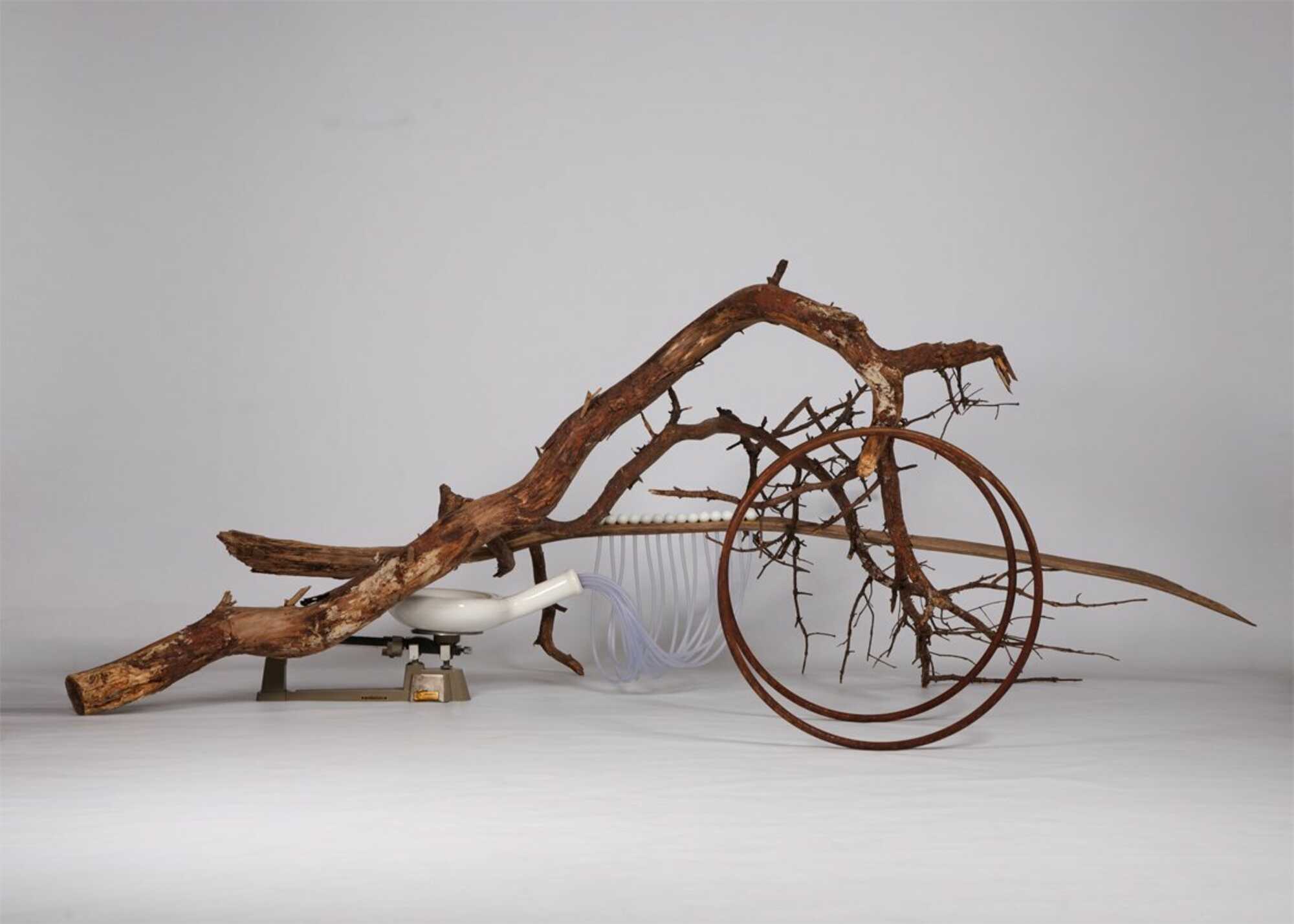 Seeds are shown in two different ways. On the scale they are shown as a value in weight. On the branch they're shown (as they are) as a gift from nature. Over time there representation can change. Balance in a physical way and in nature's way.