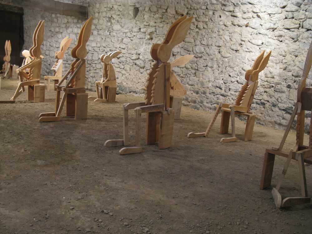 Installation of "Les Penseurs", Chateaux d'Alba la Romaine, France