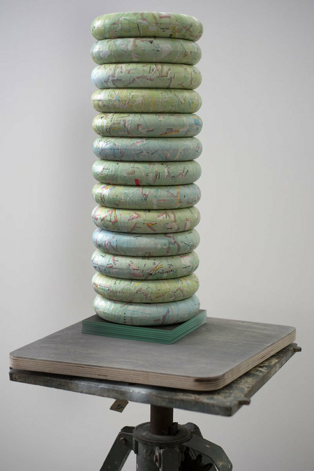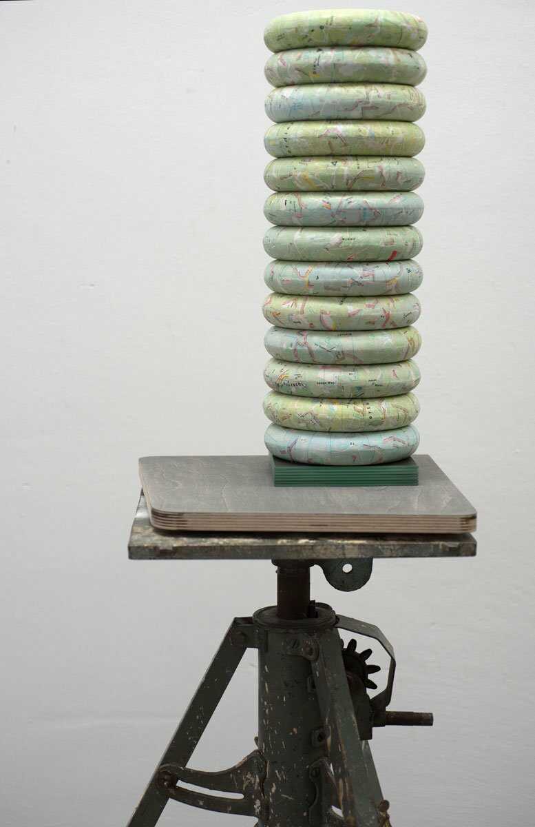 Styroporringe mit Kartenmaterial beklebt auf Modellierbock 2018