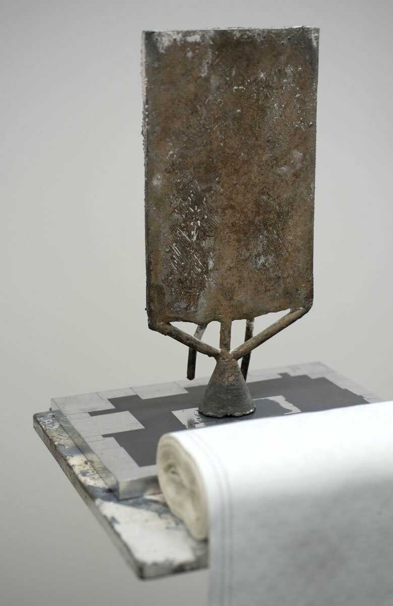 Bronzeplatte und Textil auf Modellierbock 2018