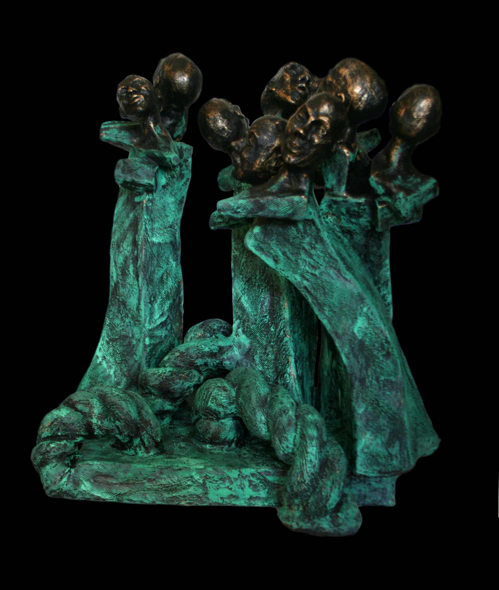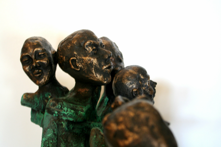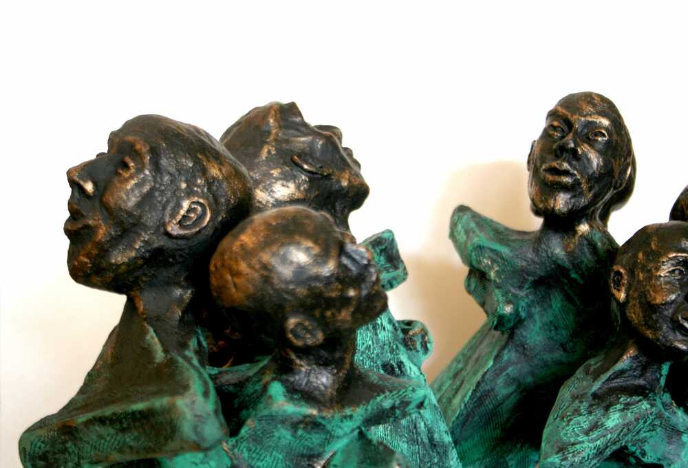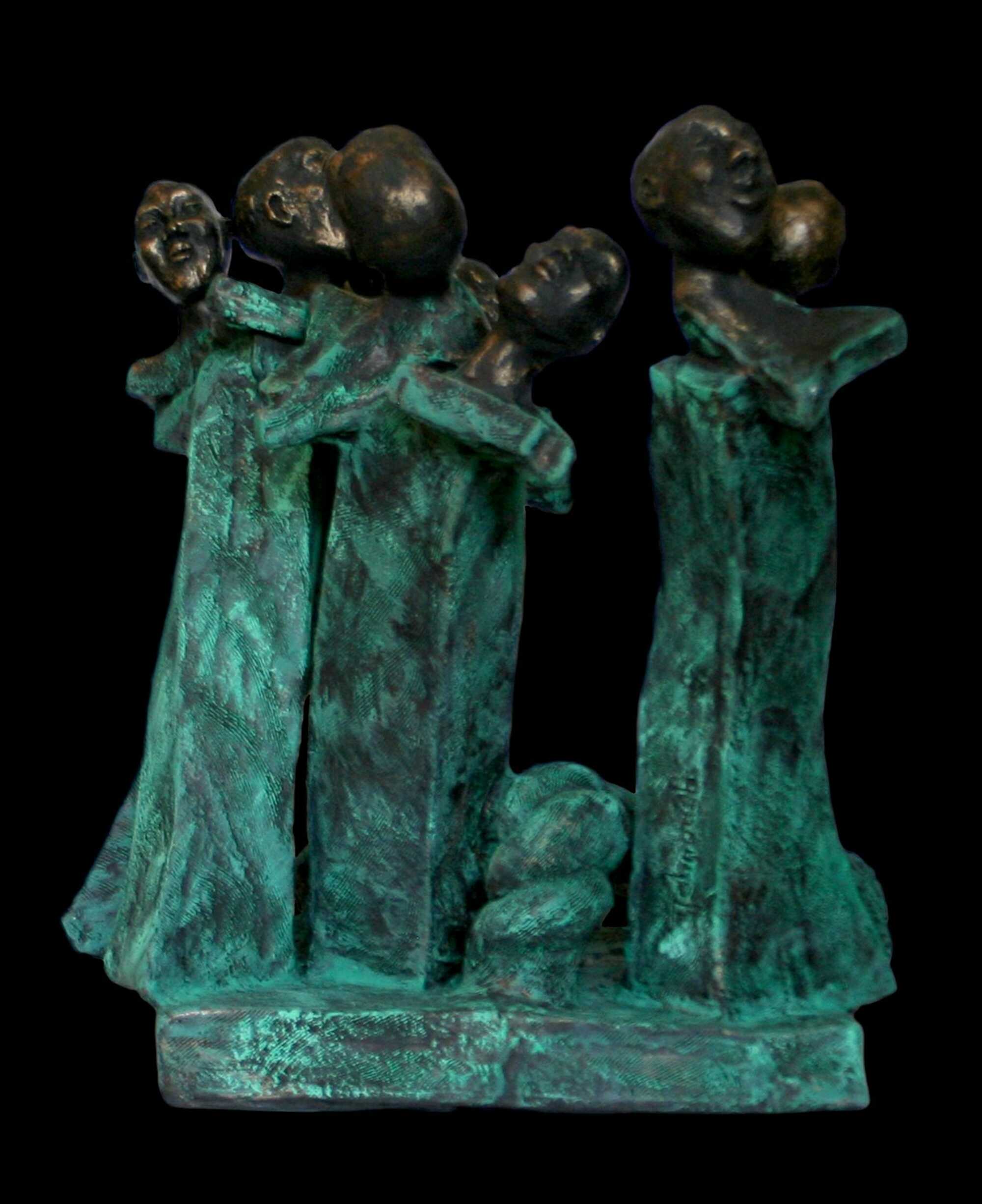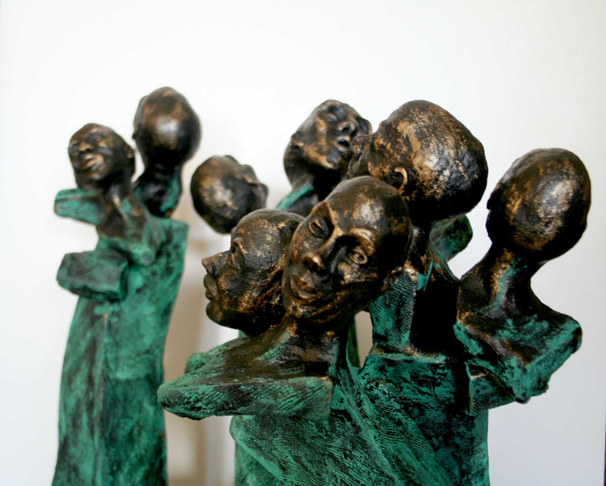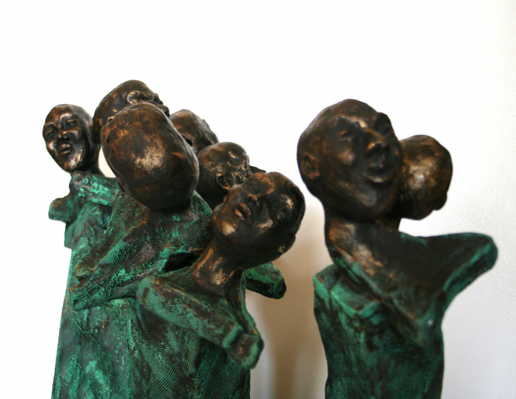 In this sculpture heads are out and wonder. They have ears and their eyes are wide open in the overwhelming feeling of reverence and admiration.
