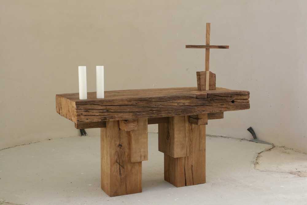 Aus 800 Jahre alten Eichenbalken des Dachstuhls der romanische Dorfkirche in Eichholz, Zerbst/Anhalt, wurde im verlauf von 2019 ein neuer Altar sowie weitere Prinzipalstücke gefertigt. Erhalt und Fortbestand der restaurirten Kirche zeigt sich damit sowohl in den getroffenen baulichen Maßnahmen als auch in ihrer künstlerischen Ausgestaltung.
