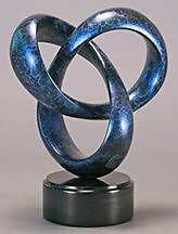 This bronze sculpture is designed in the classic T Barny trefoil form. The trefoil knot is chiral, meaning that it can be distinguished from its own mirror image. This results in two variants, right-handed and left-handed trefoils. My bronzes are molded from sculptures I have carved from stone; Catena was originally carved in Italian Alabaster.